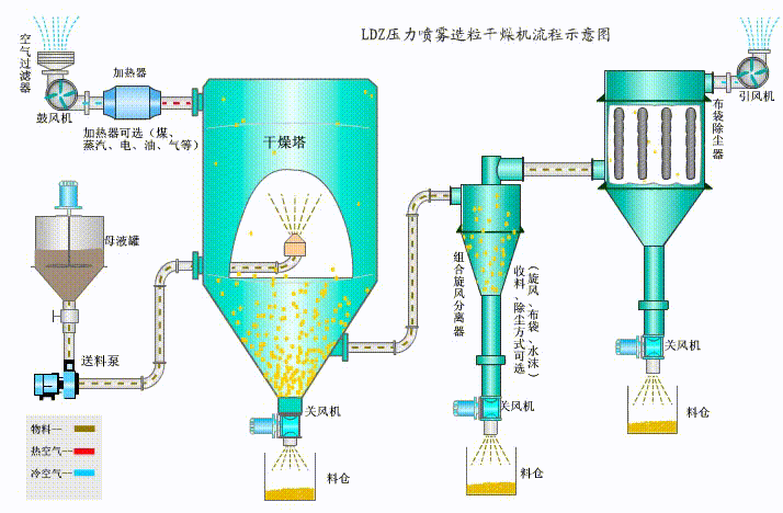 3、使用范圍廣,可進行熱風(fēng)干燥、造粒、也可以進行冷卻造粒、噴霧結(jié)晶、噴霧反應(yīng)等;